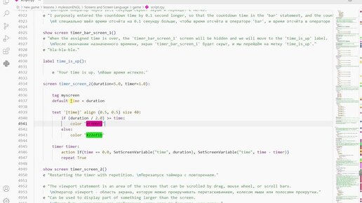 86 renpy tutorials. Экраны и язык экрана. Операторы 'timer', 'viewport'.