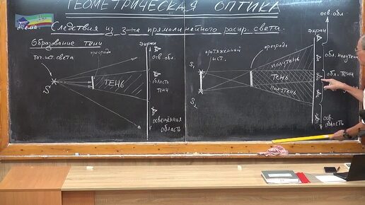 Формирование тени и полутени с помощью протяженного источника света. Границы тени, полутени и освященной поверхности