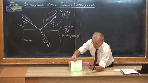 Два вида преломления света: рассеянный от листа бумаги и сфокусированный от зеркала