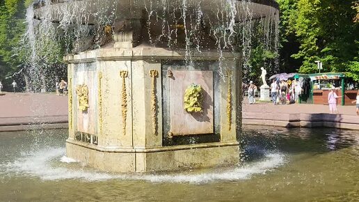 Площадь с Римскими фонтанами перед каскадом "Шахматная горка" в Нижнем парке Петергофа.