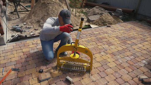 Быстрая укладка тротуарной плитки. Гильотина для плитки. Резка, колка брусчатки