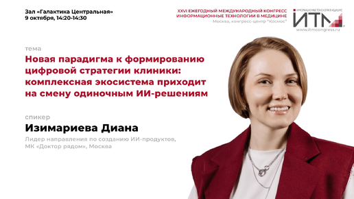 Изимариева Диана Владимировна. Новая парадигма формирования цифровой стратегии клиники: от одиночных ИИ-решений к комплексной экосистеме