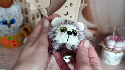 Котик колобок из меховой пряжи бесплатный мастер-класс крючком