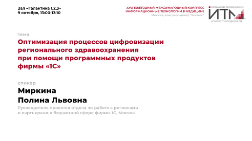 Миркина Полина Львовна. Оптимизация процессов цифровизации регионального здравоохранения при помощи программных продуктов фирмы «1С»