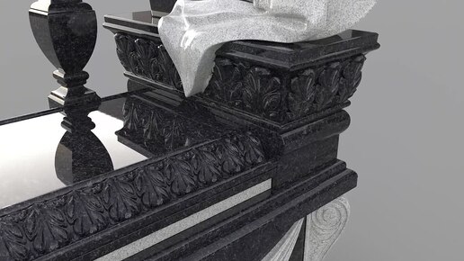 Памятник из Габбро-диабаза на могилу с плащаницей из мрамора, надетой на вертикальную стеллу