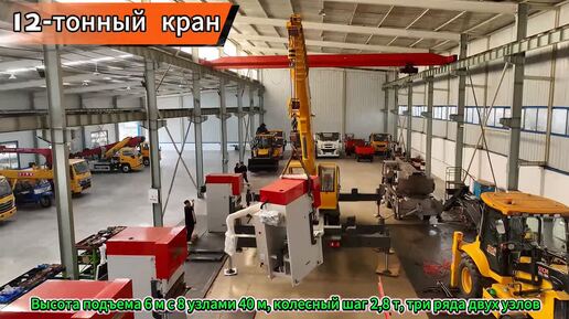 12-тонный кран, три ряда гидравлических аутригеров, колёсная база 2,8 метра