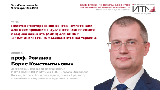 Романов Борис Константинович. Пилотное тестирование Центра компетенций формирования актуального клинического профиля пациента (АИКП)...