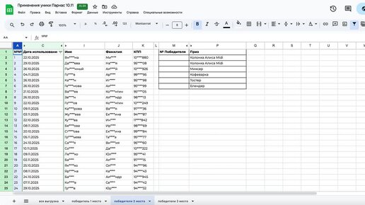 Победители Розыгрыша «Лента Парнас» 2 место