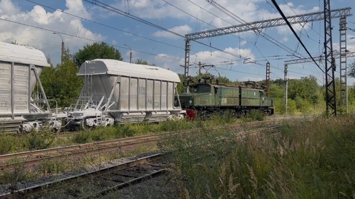 «Белые вагоны!» Электровоз EL21 - 230 с грузовым поездом на перегоне, август 2025 года
