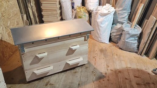 Улей Лежак на 24 рамки из хвои, высокое сетчатое дно с подморосборником, двускатная крыша.