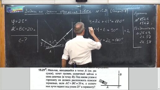 Задача на определение расположения зеркала в пространстве относительно угла горизонта