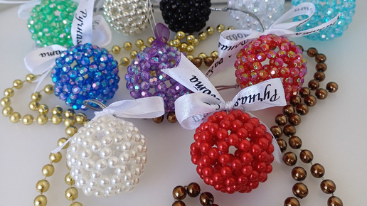 Новогодние шары из акриловых бусин. https://t.me/minigardenZ