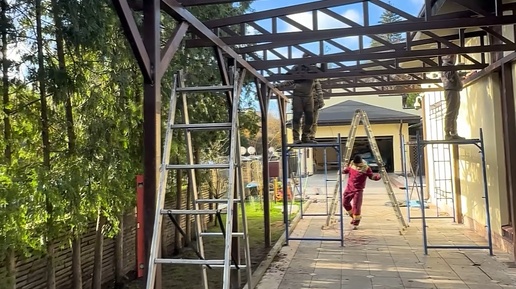 Навес к дому для автомобиля 9х4,5