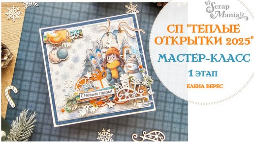 Мастер-класс. Новогодняя открытка по 1 этапу СП "Теплые открытки 2025" ScrapMania