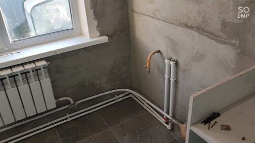 Совместили душевую комнату и кухонную зону
