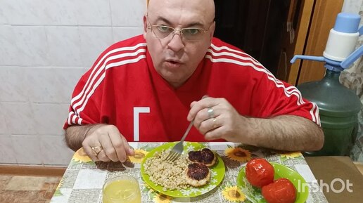 Мукбанг. Перловая каша, куриные котлеты, бочковые помидоры и морс. Русский Нострадамус.