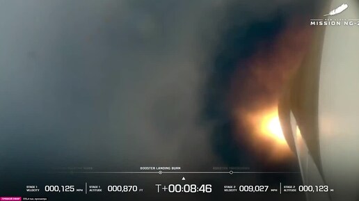 Посадка первой ступени ракеты New Glenn на баржу в океане