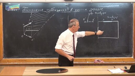 Построение области видимости отражения телевизора в плоском зеркале в прямоугольной комнате