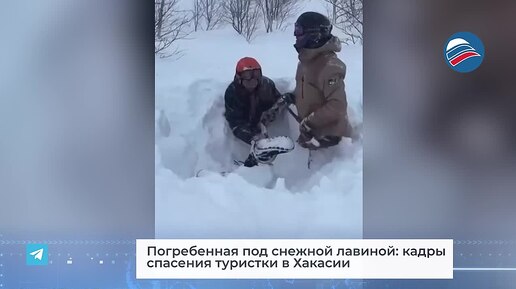 Погребенная под снежной лавиной: кадры спасения туристки в Хакасии