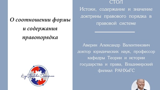 Выступление профессора А.В.Аверина на Круглом стол: «Истоки, содержание и значение доктрины правопорядка в правовой системе России»