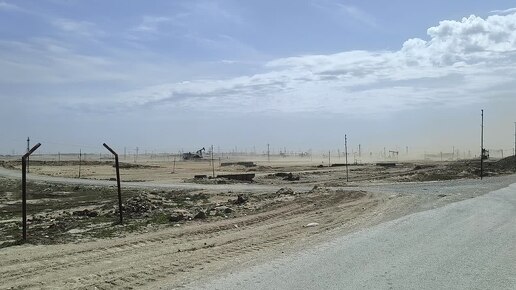Баку, Сураханы, 4 секунды песчаной бури в поле с нефтяными качалками