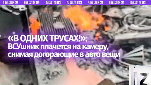 «В одних трусах остался!»: боевик ВСУ плачет над догорающими вещами в охваченном огнем авто