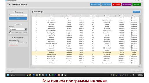 Система учёта товаров в магазине с графическим интерфейсом. Программа на Python + база данных SQLite. Курсовая работа по программированию