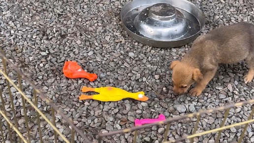 Раздача фирменной каши для собак/Щенки разбирают игрушки