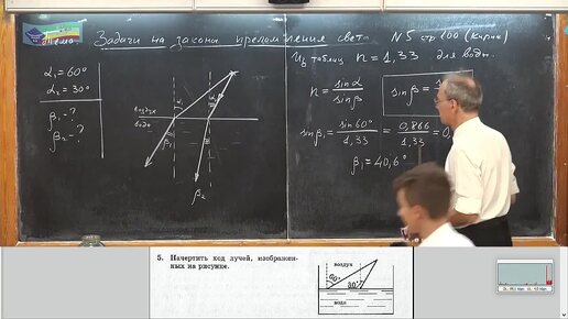 Задача на изображение хода лучей на рисунке и углов преломления лучей