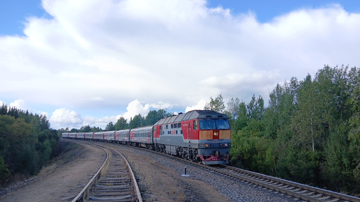 ТЭП70-0366 с пассажирским поездом №097Я СПб-Сыктывкар следует по перегону Човью-Сыктывкар