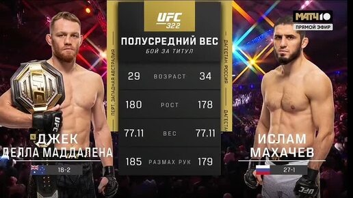 UFC 322. ДЕЛЛА МАДДАЛЕНА VS МАХАЧЕВ 16.11.25