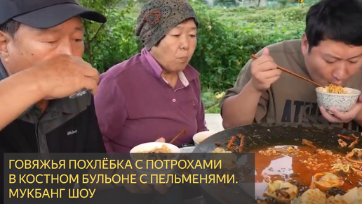 Простая домашняя похлёбка из говяжьих потрохов в костном бульоне с пельменями - Mukbang шоу еды