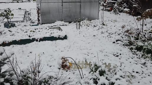 15.11.25 первый снег в Подмосковье. Припозднилась я с обрезкой гортензий и укрытием роз. Погода нестабильная.