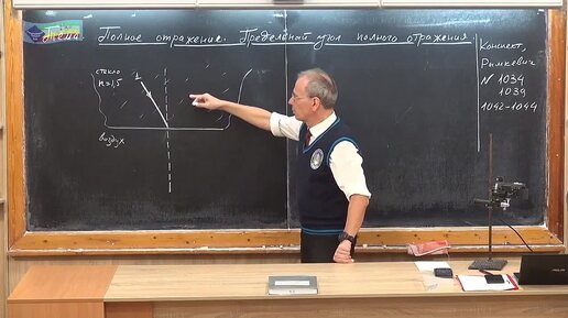 Схема падения и преломление луча из оптически более плотной среды в оптически менее плотную