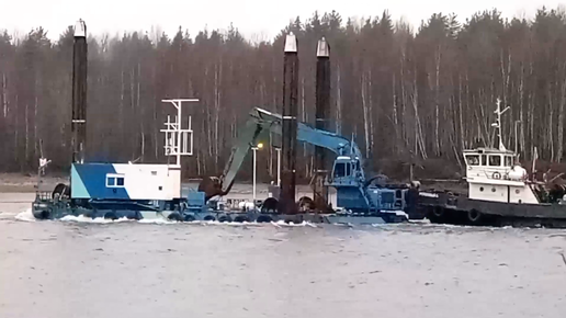 Чудо речное оказалось плавучим экскаватором на дноуглубительной платформе