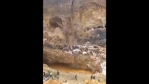 Момент обрушения огромного участка медного рудника на людей в Демократической Республике Конго