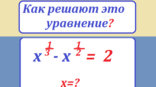 Можете решить непростое уравнение? x^1/3 - x^1/2 = 2