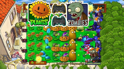 Plants vs. Zombies [PS3] Co-Op Survival Hard Day Gameplay