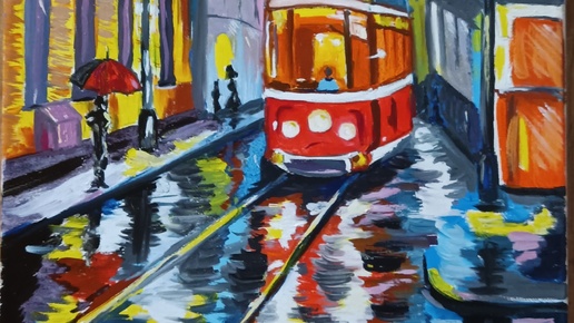 Пишем картину "Осенний трамвай", холст 30*40 см. Третья часть, завершающая. Учимся творить вместе.