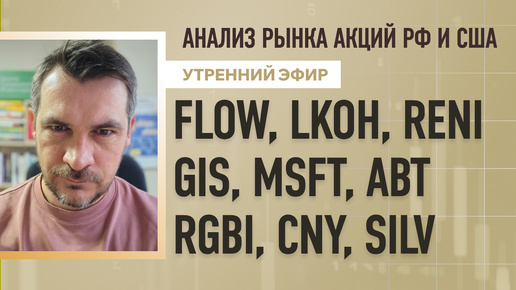 Анализ рынка акций РФ и США/ FLOW, LKOH, RENI, GIS, MSFT, ABT/ RGBI, CNY, SILV
