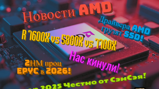 Новости AMD! Нас кинули! Лучший Проц за 20К! Драйвера AMD грузят SSD! 2НМ проц EPYC в 2026! Обзор Честно от СэнСэя!