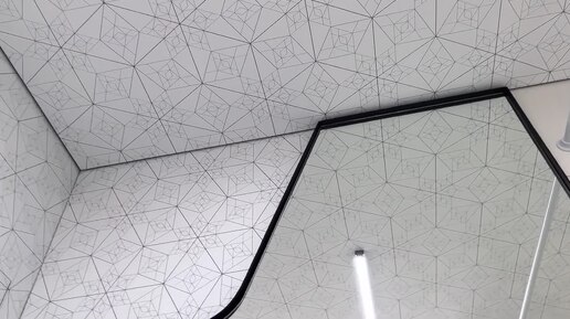 Цветная печать на натяжном потолке. Геометрические фигуры и демпферный