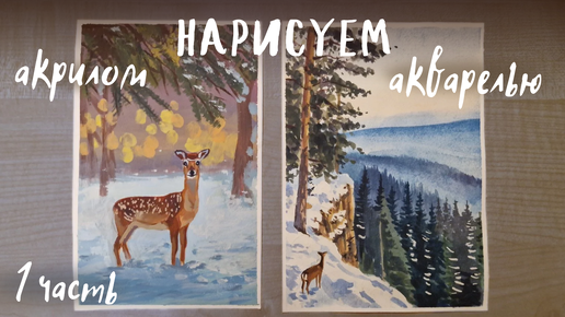 Рисуем зимний сюжет "Оленёнок в лесу" акрилом, гуашью или маслом