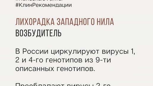 Лихорадка Западного Нила. Клинические рекомендации Минздрава