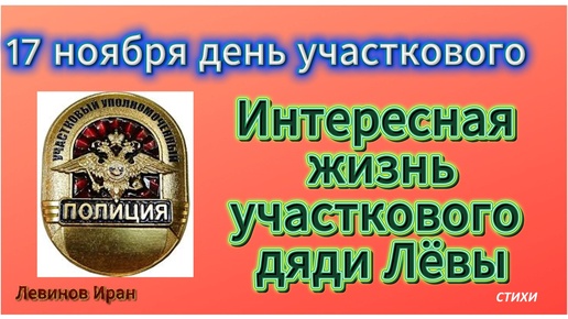 Интересная жизнь участкового дяди Лёвы. 17 ноября день участкового. Стихи. Левинов Иран.