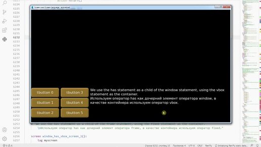 88 renpy tutorials. Экраны и язык экрана. Операторы 'has', 'default', 'on', 'use', 'for'.