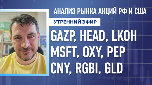 Анализ рынка акций РФ и США/ GAZP, HEAD, LKOH, MSFT, OXY, PEP/ CNY, RGBI, GLD