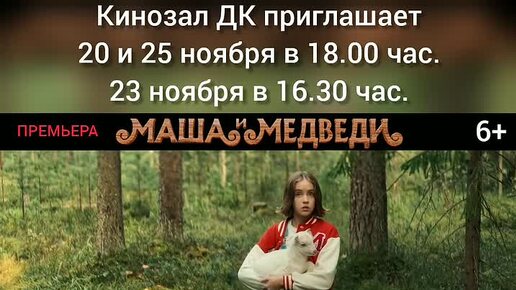 Приглашаем на фильм-сказку "МАША и МЕДВЕДИ" 2D, 6+, 80 мин. Пушкинская карта #кинозалДКям