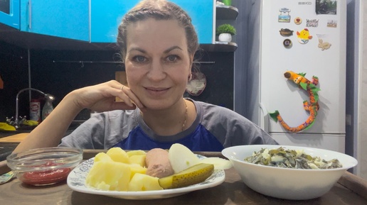 МУКБАНГ КАРТОШКА С САРДЕЛЬКОЙ/ВКУСНЫЙ САЛАТ С МОРСКОЙ КАПУСТОЙ И ЯЙЦАМИ/MUKBANG ЕДА ОБЖОР