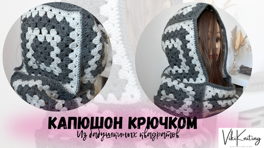 Вяжем капюшон крючком из бабушкиных квадратов | Пошаговый МК для новичков